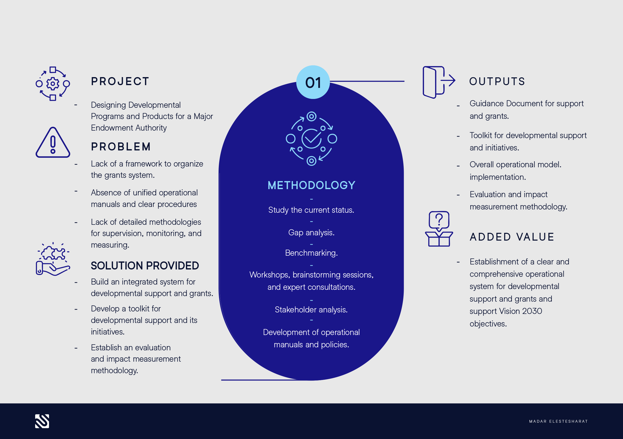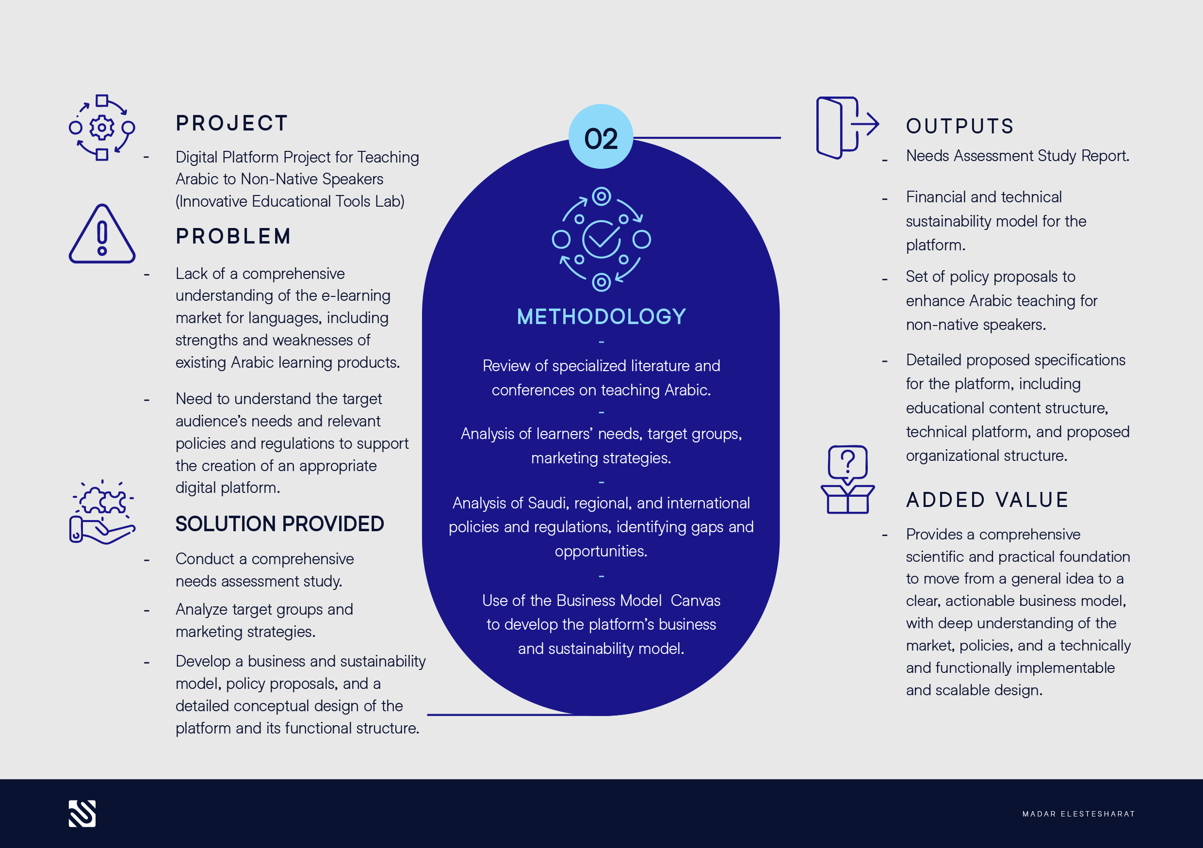 Madar Elestesharat was established as a strategic extension of Madar Modern Systems and Portals, a proven leader in business development and digital transformation since 2014. Building on a strong foundation of innovation and excellence, the group has delivered hundreds of successful engagements with pestigious organizations across the MEANA region.